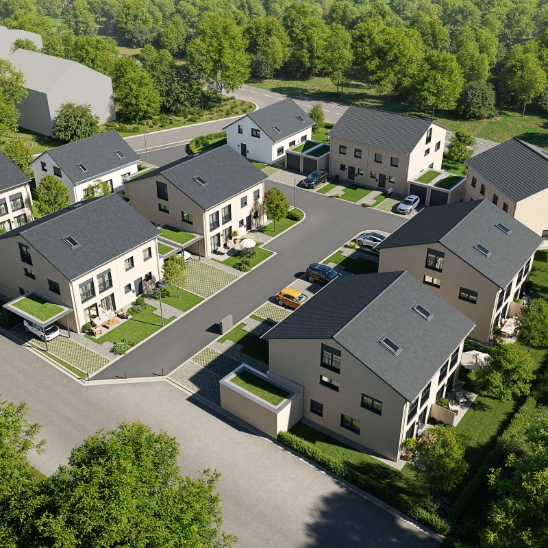 Familienfreundliche Doppelhaushälften in Rötzer-Ziegel-Element-Bauweise mit ansprechendem Farbkonzept zeichnen sich durch eine harmonische Verbindung aus traditionellem Bausystem und moderner Ästhetik. Die robuste Ziegel-Element-Bauweise sorgt für eine hohe Wärme- und Schalldämmung und eine lange Lebensdauer. Die Häuser bieten durchdachte Grundrisse, viel Tageslicht und flexible Nutzungsmöglichkeiten, sodass sie sich ideal an wachsende Familienbedürfnisse anpassen lassen.