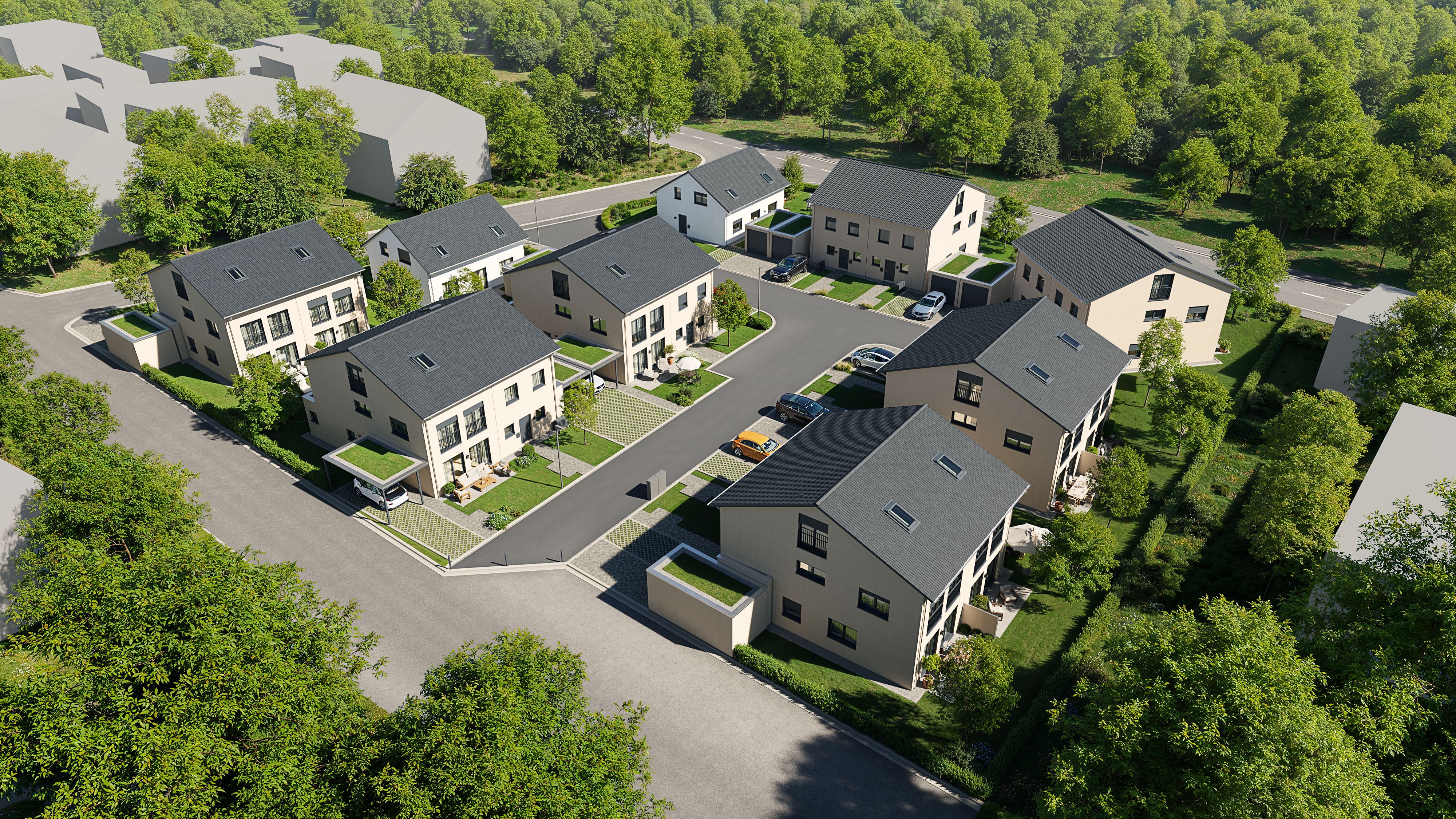 Familienfreundliche Doppelhaushälften in Rötzer-Ziegel-Element-Bauweise mit ansprechendem Farbkonzept zeichnen sich durch eine harmonische Verbindung aus traditionellem Bausystem und moderner Ästhetik. Die robuste Ziegel-Element-Bauweise sorgt für eine hohe Wärme- und Schalldämmung und eine lange Lebensdauer. Die Häuser bieten durchdachte Grundrisse, viel Tageslicht und flexible Nutzungsmöglichkeiten, sodass sie sich ideal an wachsende Familienbedürfnisse anpassen lassen.